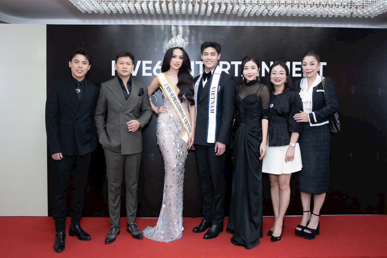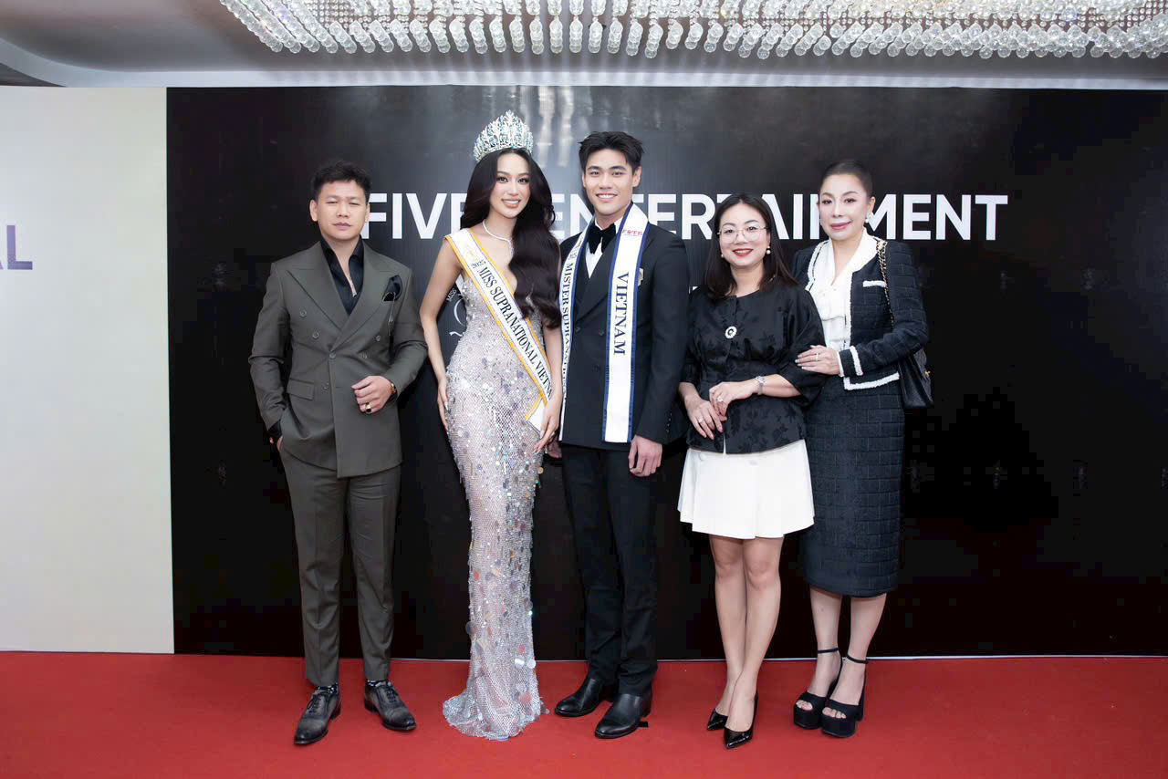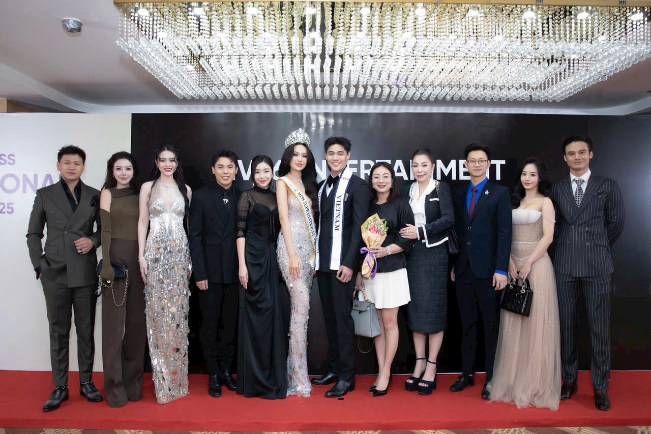 Bà Nguyễn Thị Ngọc Anh cùng hai đại diện Việt Nam tham gia Miss & Mister Supranational 2025 và các khách mời tại thảm đỏ sự kiện.